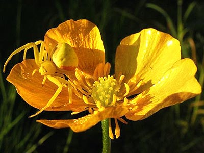 Misumena vatia jauneElle change donc de couleur pour se cacher sur la fleur et passer inaperçue!