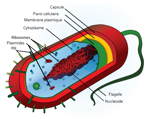 Une bactérie est composée d’une seule cellule dite cellule procaryote. Cela signifie qu’elle n’a pas de noyau.
