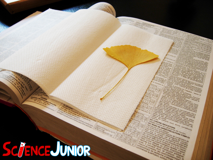 Pour ce faire, place chaque spécimen entre 2 feuilles d’essuie-tout. Place le tout dans un grand livre pour que le spécimen soit bien aplati. Le séchage dure ensuite de quelques jours pour les spécimens les plus fins, à plusieurs semaines pour les plus épais.