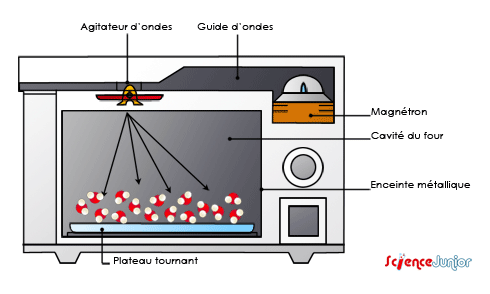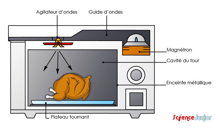 L’enceinte métallique va réfléchir les ondes pour qu’elles restent à l’intérieur du four et qu’elles atteignent les aliments