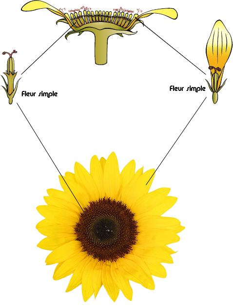 Fleur composéToutes les fleurs ne sont pas des fleurs simples, il existe aussi des fleurs dites composées ! Elles sont formées d’un grand nombre de fleurs simples avec toutes leurs pièces (sépales, pétales, étamines et pistil) assemblées et surtout simplifiées pour ressembler à une fleur simple !